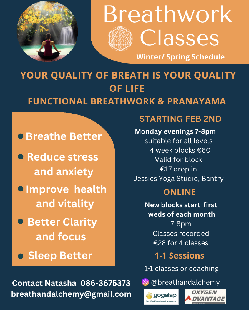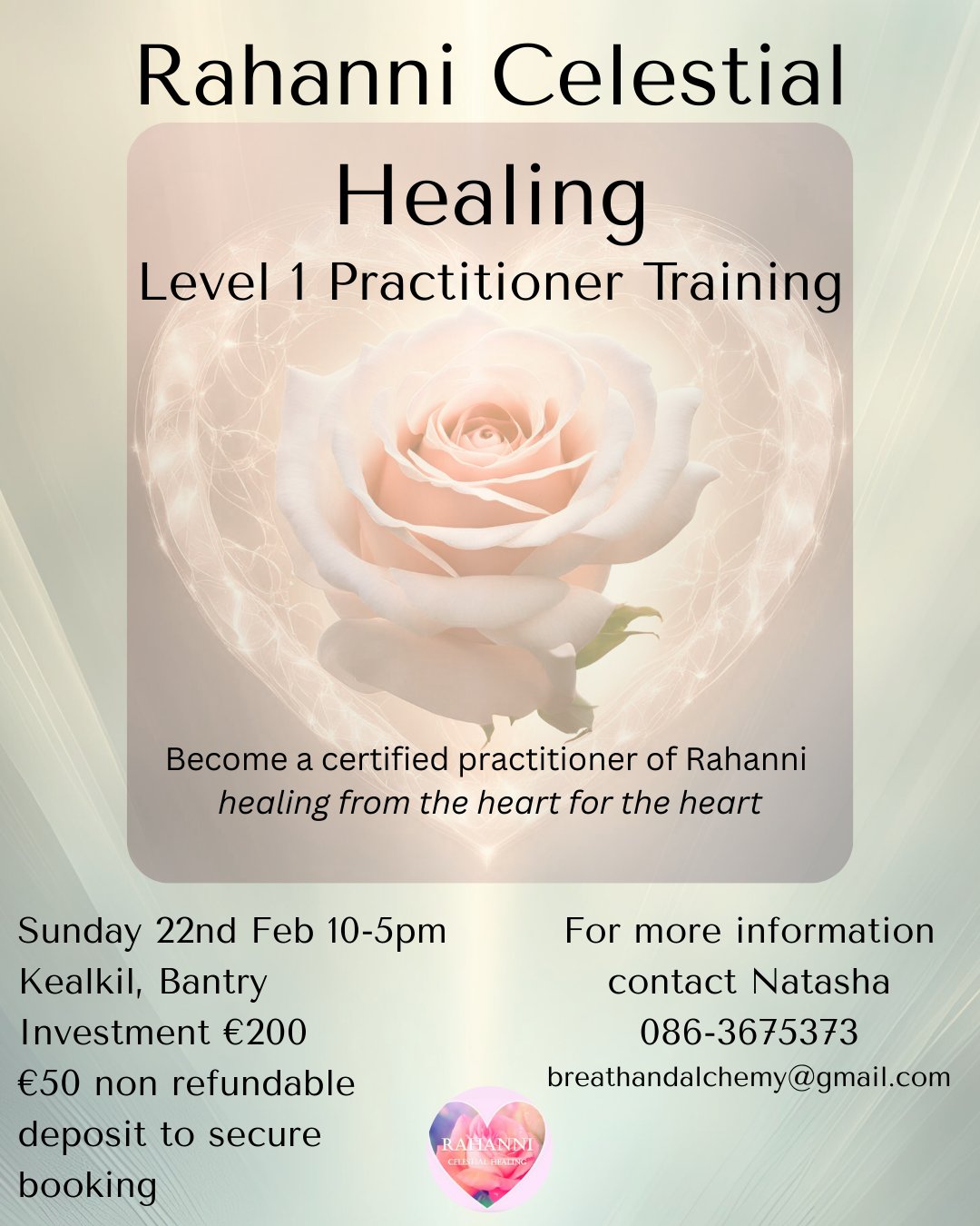 I hold weekly breathwork and meditation classes in Bantry, West Cork as well as monthly breathwork workshops and healing circles. On a 1-1 basis I offer unique signature wellness journeys, Rahanni Celestial Healing, Shamanic Healing, soul readings and private breathwork sessions from my healing room in Kealkill, in the West Cork countryside. With a background in arts and education I am also passionate about delivering workshops to schools and education centres around Munster.